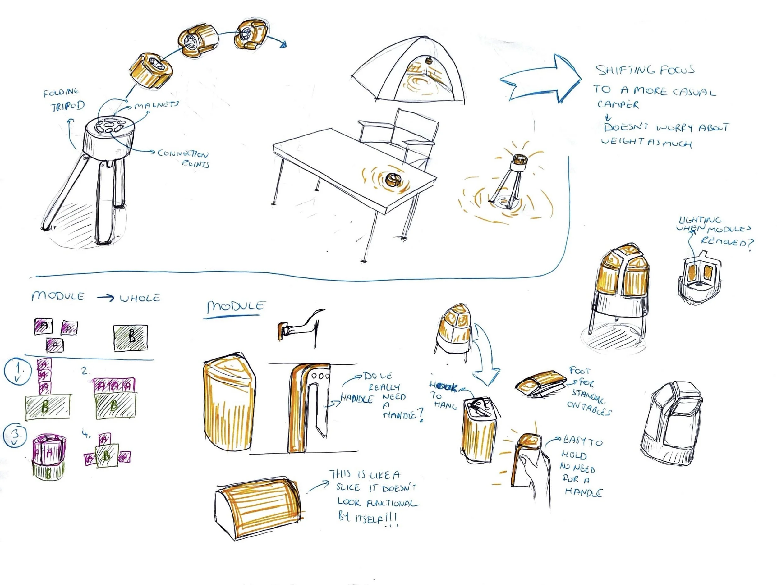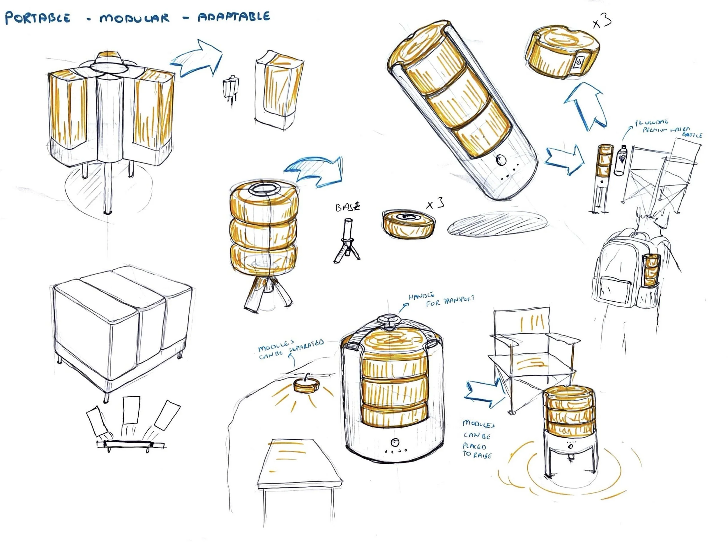 Generated several concepts through sketching and ideation. These helped me understand different scenarios and how the product can adapt to them.