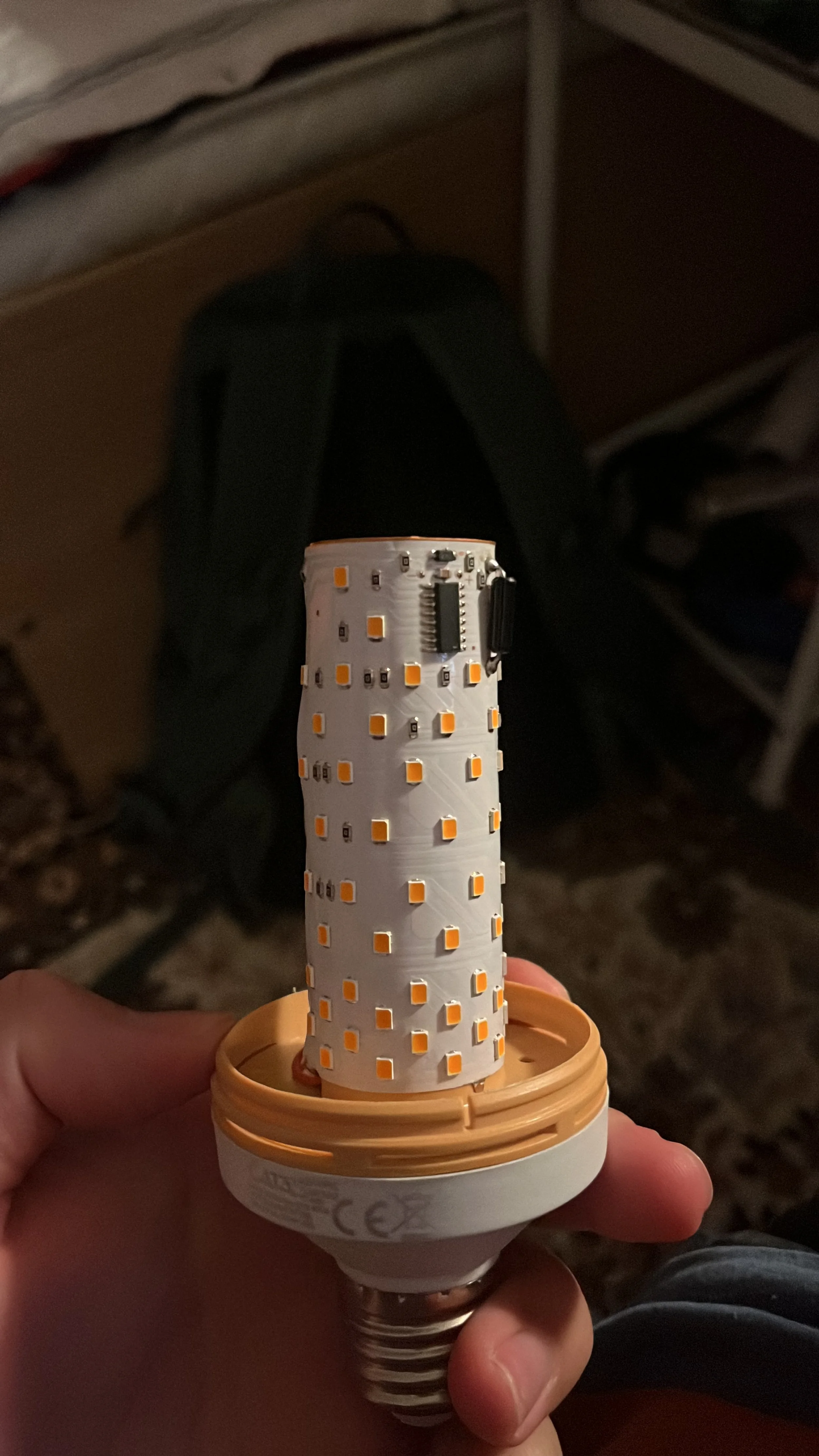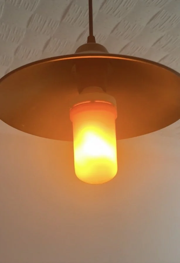 A light bulb with fire simulation, it uses an LED grid and a driver to simulate the light play of a fire.