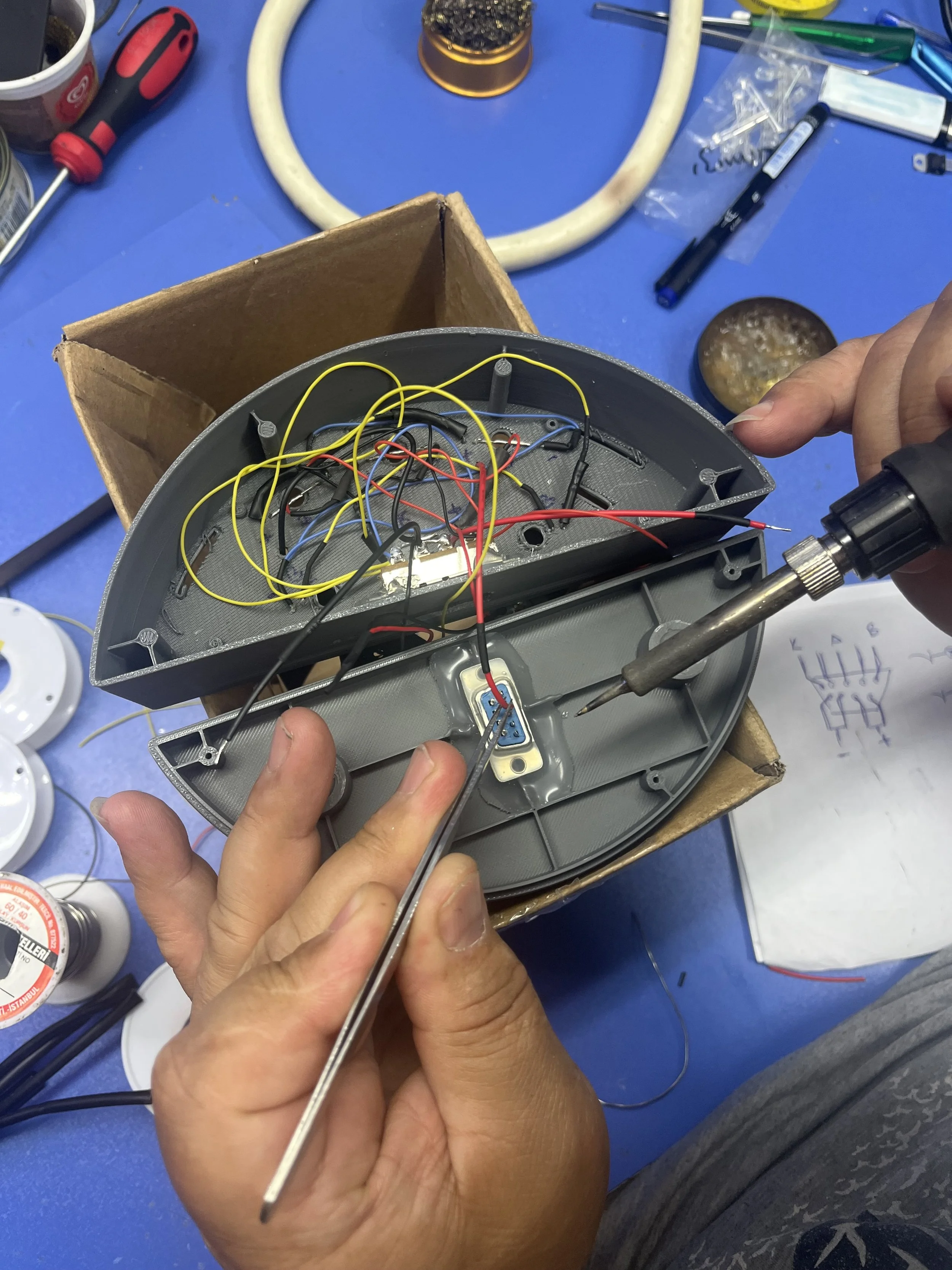 To make the final working prototype, I used an ESP-32 board to switch between different modes and play the fire crackles during campfire mode. The body of the prototype is made using 3D printing.